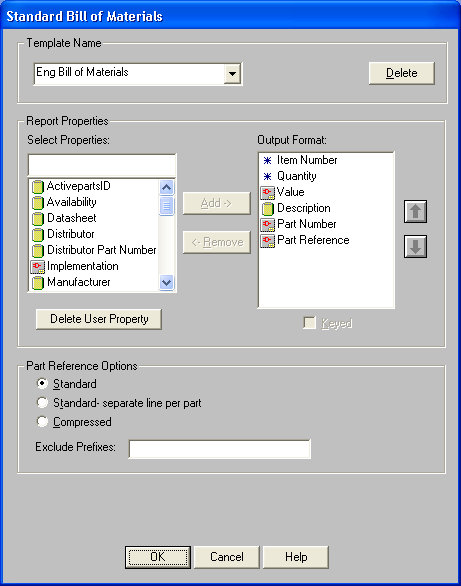 Reports (стандартные шаблоны имеют имена ENG_BOM, QTY_COST, APPROVAL);